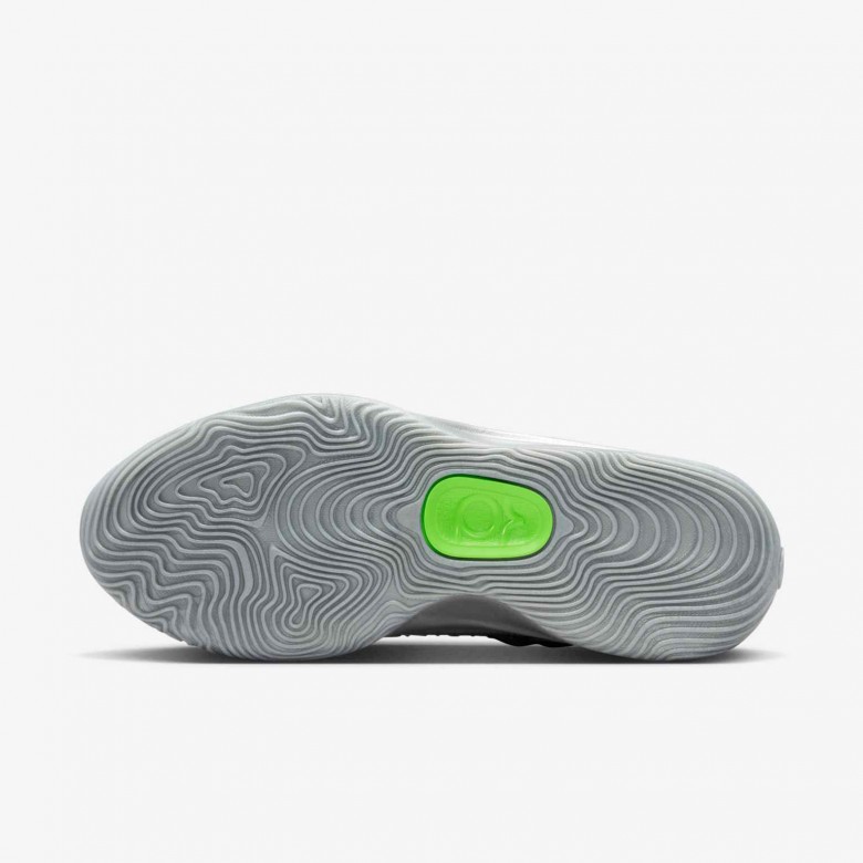 The chrome cage speaks to the pedal-to-the-medal mentality KD's had since he was a kid, while the green underlays nod to his always on-go attitude toward the game that he’s eternally grateful for.
